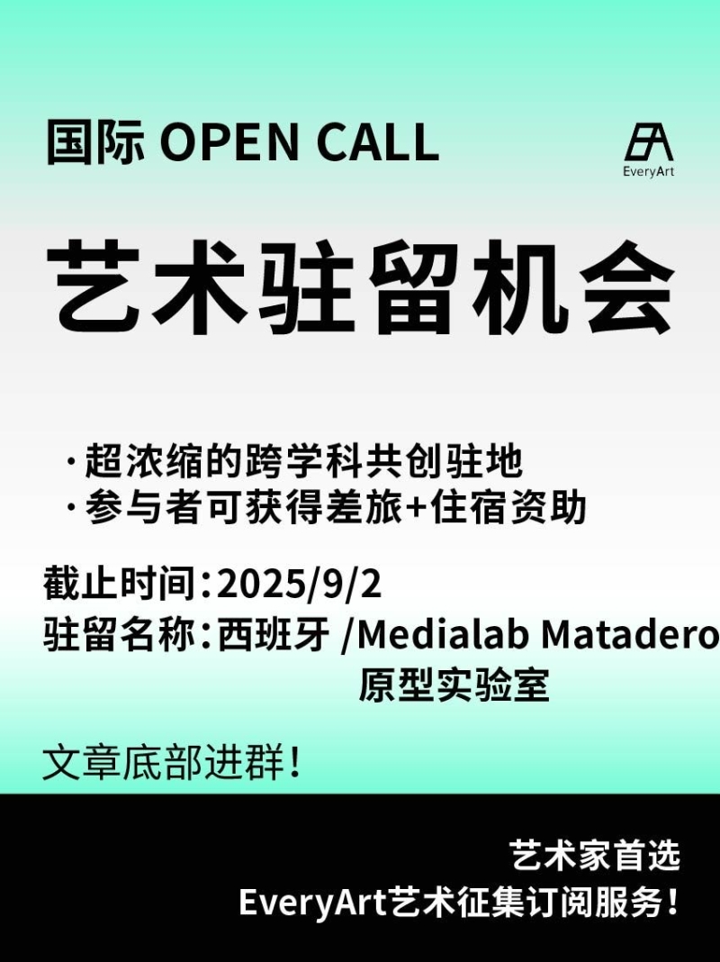 2025-08-20 临期|征集资讯 #艺术驻留 #国际艺术驻留 0 评论 76 喜欢 分享 白雪松 自我介绍一下吧~ 查看TA的全部内容 +关注 EveryArt 去发现更多有趣内容 微信扫码打开EveryArt小程序 体验更多「EveryArt」新功能 评论 0 我也来讲两句