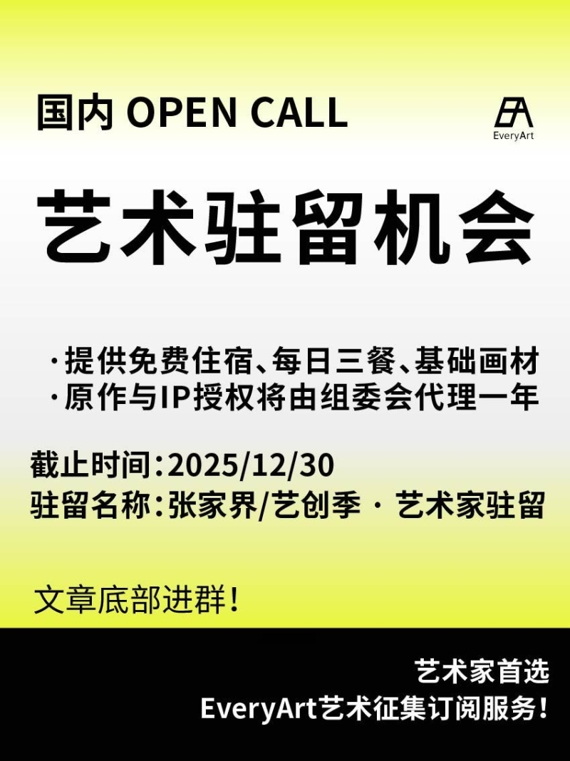 2025-08-20 全球|艺术驻留 #国内艺术驻留 #艺术驻留 0 评论 65 喜欢 分享 白雪松 自我介绍一下吧~ 查看TA的全部内容 +关注 EveryArt 去发现更多有趣内容 微信扫码打开EveryArt小程序 体验更多「EveryArt」新功能 评论 0 我也来讲两句