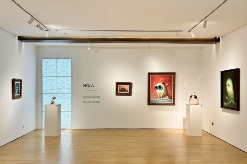 ◾关于展览: 正值中西建交50周年,虹·美术馆与恪理画廊特别推出「浪漫狂想曲 La Melodia Romántica——西班牙青年艺术家联展」。我们精心准备了9位西班牙青年艺术家的代表作品,希望能以艺术为桥梁,为大家呈现多样且独特的西班牙浪漫风情。 眼神,大概是万物生灵间最无声的浪漫——不需要语言,我们可以从眼眸中感知一切。这就是奥古斯·威利亚作品的魅力。凝视着画面里的大眼睛,你是否也会被它们吸引,不自觉地停下匆忙向前的脚步?这位凭借直觉描绘潜意识世界的艺术家,落笔之处却细致甚微:在深邃幽暗或是充满光晕的背景中,沉郁的愁思生物和治愈的毛绒精灵都呢喃着各自的生命故事。正如他自己所说,“我不选择我的角色……是他们以某种方式选择了我。”梦幻神秘,怪诞又令人沉静,他为我们编织出一个异次元的想象空间,每个人都仿佛能在这片境地中找到时空中遗落的自己,也许在某次日落,也许是一次邂逅。