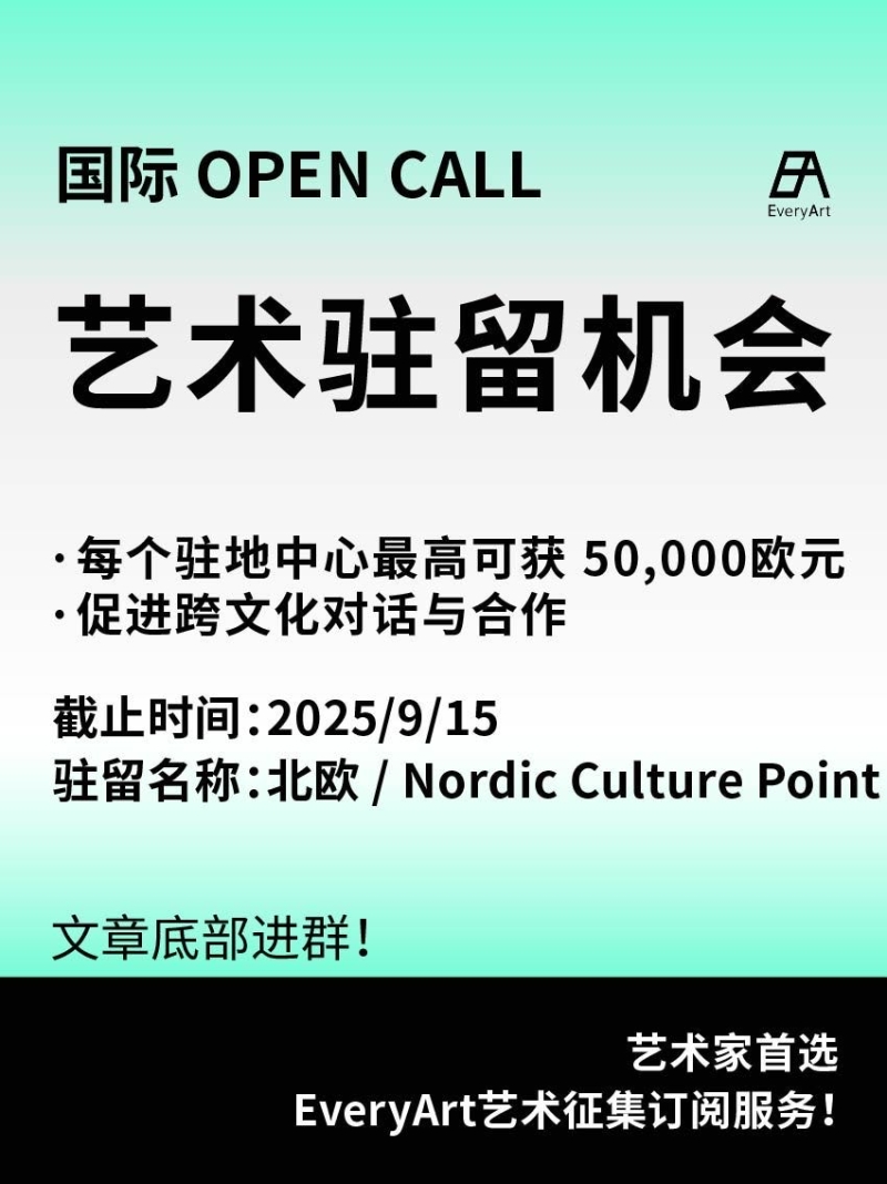 2025-08-24 临期|征集资讯 #艺术驻留 #国际艺术驻留 0 评论 74 喜欢 分享 白雪松 自我介绍一下吧~ 查看TA的全部内容 +关注 EveryArt 去发现更多有趣内容 微信扫码打开EveryArt小程序 体验更多「EveryArt」新功能 评论 0 我也来讲两句