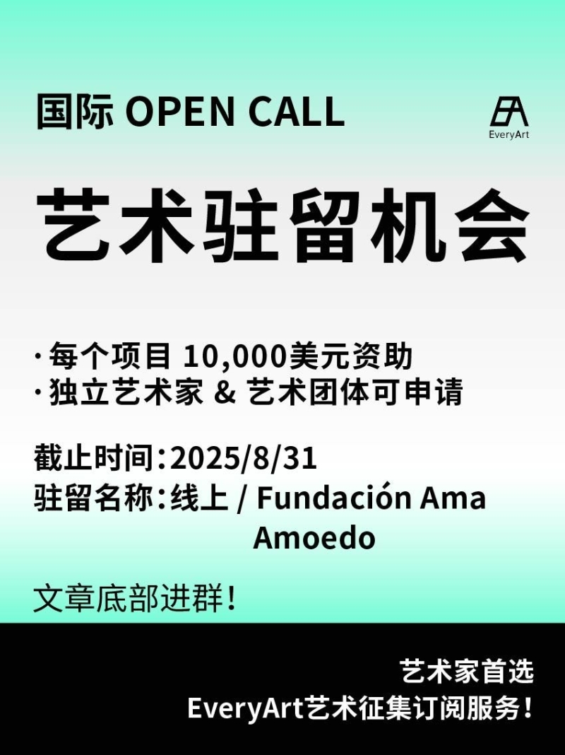 2025-08-24 临期|征集资讯 #艺术驻留 #国际艺术驻留 0 评论 64 喜欢 分享 白雪松 自我介绍一下吧~ 查看TA的全部内容 +关注 EveryArt 去发现更多有趣内容 微信扫码打开EveryArt小程序 体验更多「EveryArt」新功能 评论 0 我也来讲两句