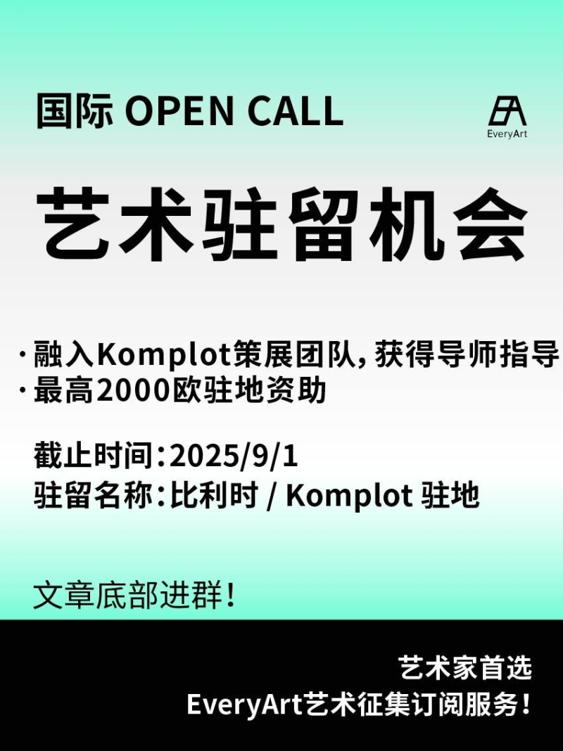 2025-08-24 临期|征集资讯 #艺术驻留 #国际艺术驻留 0 评论 33 喜欢 分享 白雪松 自我介绍一下吧~ 查看TA的全部内容 +关注 EveryArt 去发现更多有趣内容 微信扫码打开EveryArt小程序 体验更多「EveryArt」新功能 评论 0 我也来讲两句