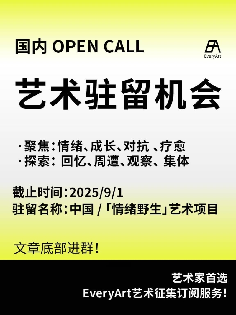 2025-08-30 临期|征集资讯 #国内艺术驻留 #艺术驻留 0 评论 71 喜欢 分享 白雪松 自我介绍一下吧~ 查看TA的全部内容 +关注 EveryArt 去发现更多有趣内容 微信扫码打开EveryArt小程序 体验更多「EveryArt」新功能 评论 0 我也来讲两句